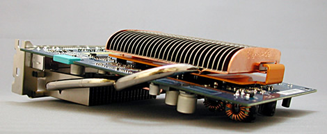 技嘉GV-NX76T256D-RH显卡是技嘉静音家族中一员。这款显卡采用的Silent-Pipe II散热技术,除了核心上有一块大面积的散热片,在其几口部分也有一个大面积的散热片,并且采用了“百叶窗”的设计与外界相通,可以及时地将显卡发出的热量从机箱排出。另外,在显卡的背部也有一个超大面积的散热片,保证显卡的稳定运行。