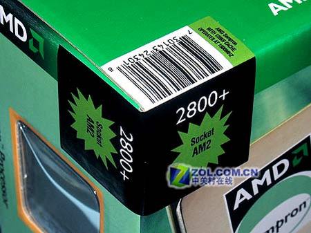产品外包装角标上标注有“2800+ Socket AM2”字样,实际主频为1.6GHZ,128KB L2级缓存。