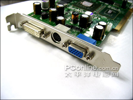 接口部分为传统的D-SUB+S-Video+DVI三头输出,满足用户不同的需求,7pin输出端子支持色差输出。