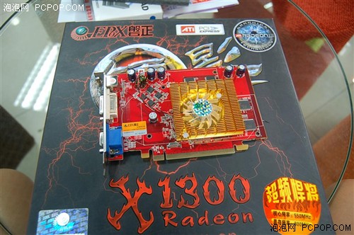 目前NV正在力推其低端的7300LE产品,ATI方面则拿出了X1300系列与之相抗衡。磐正此款X1300采用非公版PCB设计,搭载90nm制造工艺的RV515图形核心,具有4条象素管线,2个顶点引擎,同时也具备了X1000系列的所有特性。