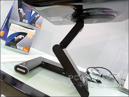 奇特的三轴铰链底座是971P的一大卖点,虽说在前面介绍的770P上我们就看到它的身影。不过经过全新设计之后的它,不仅更为时尚、美观,而且赋予显示屏更大的自由升降空间,再配合以机身背后的圆形枢轴,令屏幕实现多角度旋转。