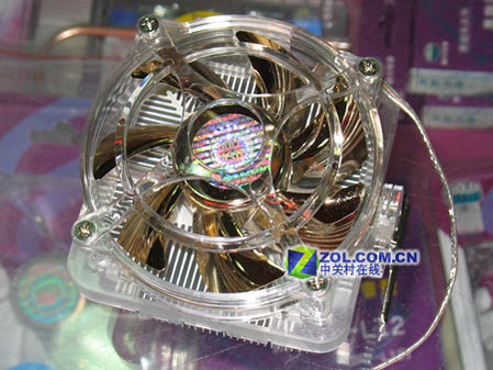 金色的风扇不光外表漂亮,它的性能也比较出众:尺寸为9cm,采用合金轴承,转速2500rpm,噪音只有25dBA。并且具有40000小时的使用寿命。
