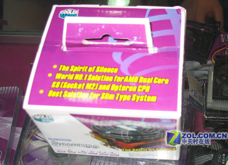 使用COOLER MASTER的惯用紫色风格纸质包装。从包装规格来看,应该是一款普通的散热器,看不出其不菲的售价的气势。