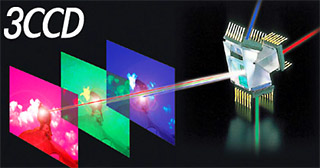3CCD一直是专业摄像机的标准配置。3CCD,顾名思义,就是一台摄像机使用了3片CCD,分别用一片CCD接受红,绿,蓝这三种颜色并转换为电信号,然后经过电路处理后产生图像信号,这样,就构成了一个3CCD系统。和单CCD相比,3CCD摄像机拍摄出来的图像从彩色还原上要比单CCD来的自然,亮度以及清晰度也比单CCD好。