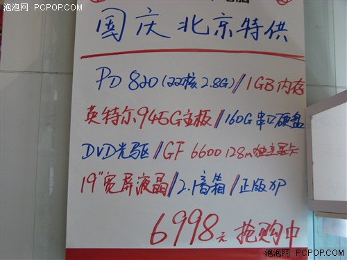 它使用奔腾D820双核处理器、Intel 945G芯片组主板、1GB内存和GeForce 6600显卡,还拥有160GB硬盘、Combo光驱和5ms响应时间的19粗宽屏液晶显示器,性能确实让人满意。