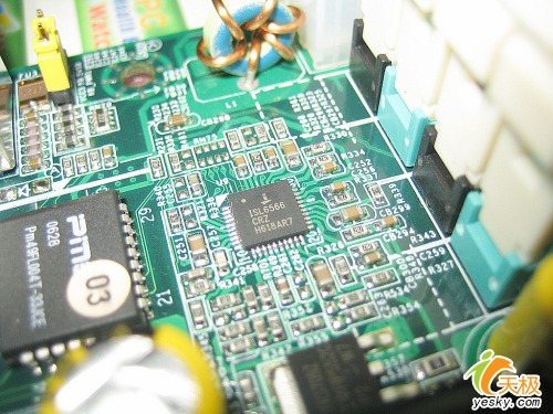 ISL 6566是一颗PWM供电芯片,提供了精准的电压控制系统输出,也就是说,这款主板的超频性能因此大幅提升。