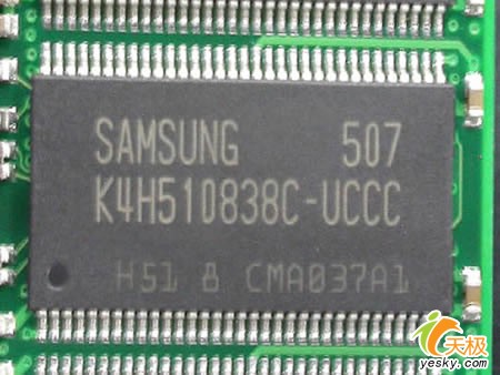 宇瞻DDR400采用的是三星原厂颗粒,其编号是K4H510838C-UCCC,容量为512MB,CL为3,凭借三星颗粒及宇瞻电子的高端技术,相信这款DDR400给用户带来更强的超频稳定性能,对于不超频的用户来说,它已经提供了DDR400内存所能达到的默认最佳性能。
