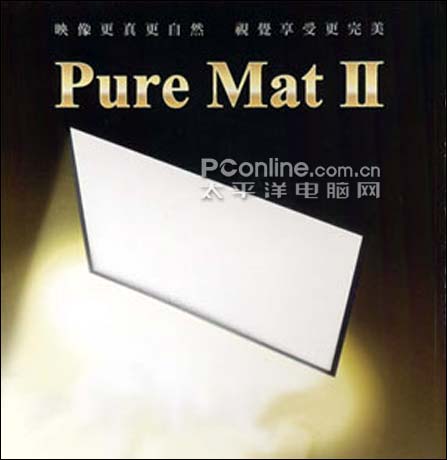 OS的银幕因为价格适中,也比较流行,在去年HiVi bestbuy,排在家用银幕之首。PURE MAT II使用WF-202的面料,是以前的PURE MAT(WF-201)的升级型号,背面的涂层从201的灰色变成现在202的黑色,其吸光作用更好。正面是纯白色较粗的编织物纤维材料,摸上去手感像地毯,起伏不平的表面增强了漫反射作用,是典型的漫反射式白幕。增益0.8,视角120度。呈现的画面也有典型漫反射银幕特性,色彩准确性好,它可以精确的表现了投影机的色彩,没有自己的色彩偏向,其背后黑色涂层也起到了一定的提高对比度的作用,直观感受,比普通白塑对比度约有10%的提高。美中不足的是其面料有很多起伏的纹路,因此背景噪点上比其他幕多一些。不过相对其低廉的价格,不俗的画面表现,也给普通家用提供了很好的选择。