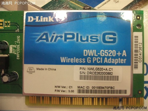 这款PCI无线网卡型号为DWL-520+A,它同样采用了散热金属片来保护芯片,天线也是可拆卸的,价格也很厚道。