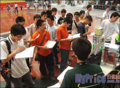 展台前挤满了前来咨询和参加现场问卷调查的学生朋友