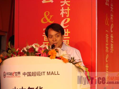 中关村e世界数码广场总经理梁总在发言中介绍了中关村e世界数码广场的总体概况和e世界与水木年华结缘的原因。