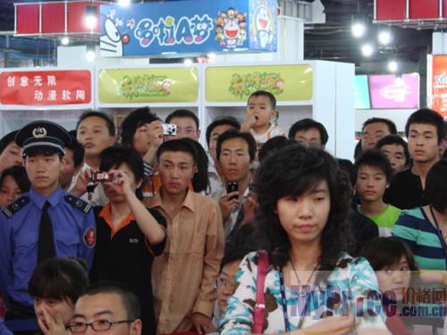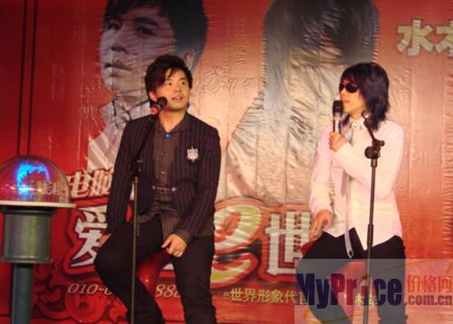 发布会上,水木年华的背景墙异常醒目,画面上并无太多的装饰,只是水木年华两个人真实感言,简洁而有力:买电脑,爱上e世界!