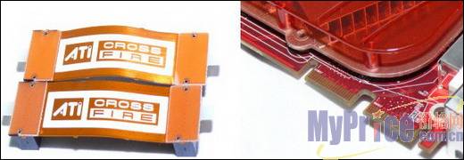 RV570核心与以前交火方案的最大差别就是采用原生Crossfire,并且有两个MIO接口可以双向传输数据。显存规格为256M/256bit,采用三星GDDR3 颗粒,显存速度为1.4ns,实际运行频率为1200MHz,1.4ns显存的理论最大频率为1400MHz。