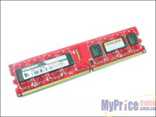 黑金刚金刚版DDR2 667 1GB内存现在报价220¥,这款内存采用二次封装,采用什么颗粒不得而知,但是这种打着KINGBOX字样的颗粒可以承受2.4v的内存电压,体制相当不错。在2.2v的电压下可以得到DDR2 667/3-3-3-9的时序,或者达到DDR2 800/4-4-4-12的程度。