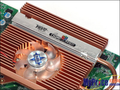从外观上来看,这款显卡采用绝色的PCB板型,做工看上去非常的精细,布线错落有致,各元器件间的焊接也比较饱满,其中最显眼的就是其硕大的散热风扇啦,几乎占据整个显卡的一半还多,其纯铜散热+热管+主动散热风扇的三重设计,还真有点是一位从林的勇士。相信也是凭借这一大卖点吸引不少注重性价比玩家的目光。其做工非常的优秀,用料考究,显现出一线大厂的风范。