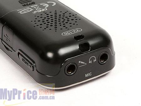 在外观上,三星YV-150时尚的外观一改传统的录音笔造型,整体个机身精致小巧而且机身周边非常圆润,手感极佳,在色调上银色钩边与黑色机体搭配也显得非常的稳重,大方。