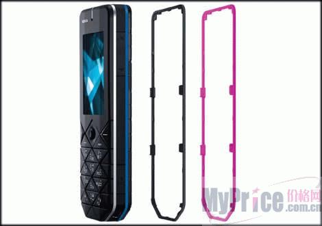 诺基亚7500的键盘采用大胆的菱形设计,而机身背部更有多重菱形图案,并拥有明显的对比度,该机下端两个边角采用菱形倒角设计,看上去格外前卫时尚,虽说这种设计灵感来自钻石,但整体感觉更近似与用钻石打造成的菠萝。