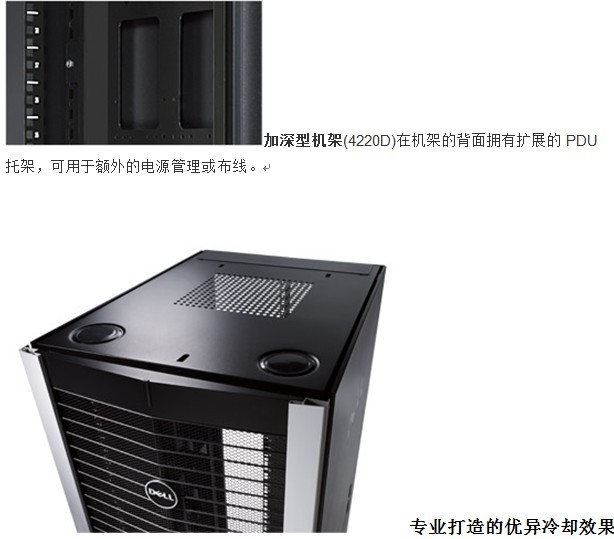 • PowerEdge 4220机架式盘柜的静负重为2,500磅,有三种尺寸可供选择,可提供您容纳数据中心设备所需的容量。