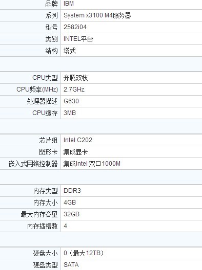 IBM x3100 M4塔式服务器2582i04(P-G6230 4G 4个硬盘位 DVD 键鼠) 4200元