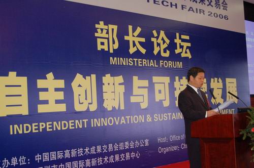 第八届高交会部长论坛开幕2006-10-12 17:25:29 高交会交易中心今日上午9:45,主题为“自主创新与可持续发展”的高交会部长论坛――信息技术专场及科技贸易专场分别在深圳会展中心6层茉莉厅和桂花厅举行。 中国商务部副部长魏建国,中国科技部副部长马颂德、荷兰外贸大臣卡里安•范•赫尼普女士、古巴科技与环境部代部长费尔南多•马里奥•冈萨雷斯•贝穆德、中国信息产业部副部长娄勤俭、中国国家发展与改革委员会副主任张晓强、科摩罗副总统易地•纳华姆、巴基斯坦电信总局副局长纳斯如尔•卡里姆•艾哈迈德•奥兹纳维等嘉宾出席论坛并发表演讲。 图片如下: