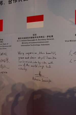 位部长在所属国家的国旗下题词签名,用本国文字留下了对第八届高交会和中国、深圳的美好祝福。