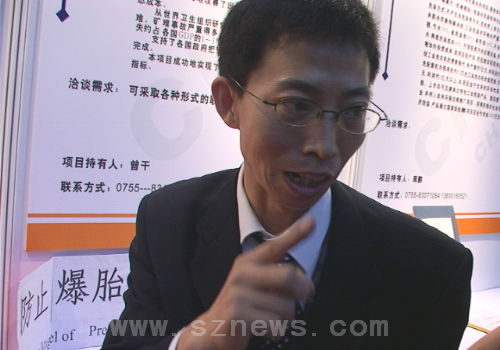 10月13日上午,记者在深圳会展中心个人技术创新展区见到了盛年发明的“自动刷卡”地板。据盛年介绍,这套系统是将他发明的感应装置安装在一块地板内,需要刷卡的人只需要将装载自己信息的芯片贴在鞋底就可以了,不要看这个芯片只有一元硬币大小,却可以装载很多的内容,而且耐磨损,由于用身份证登记使用实名制,以及安全密码等,安全性能也比较完好,芯片丢失后也不用担心。 盛年介绍说,他目前开发得比较完善的一套系统可以在公交车上使用,乘客穿上贴有自己芯片的鞋上车,只需往装在车厢内的“自动刷卡”地板上一踩即可,再不需要排队刷卡,对于没有刷卡或刷卡不成功的乘客,“自动刷卡”地板能准确地定位该乘客的位置,并通过车厢内安装的视频系统告知司乘人员。盛年告诉记者,深圳南山区吴女士对这套系统非常感兴趣,表示愿意出资4000万元共同开发。 下一篇:高交会成就“爱可视速度”