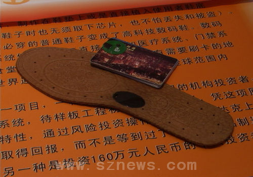 上班要刷考勤卡、上公交车要刷卡、上医院要刷社保卡、到银行要刷银行卡……现代生活中需要刷卡的地方实在太多,身上带的各种各样的卡也越来越多,深圳的民间发明者盛年突发奇想,发明了一套用鞋底就可以刷卡的系统,在第八届高交会参展时引来不少投资者的目光。