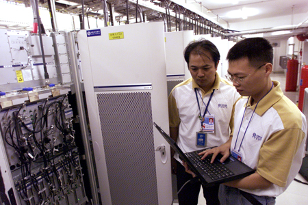 技术专家在测试会展中心机房设备 据介绍,深圳由于其特殊的地理环境,人口密集度特大,话务十分集中,手机单机话务量是澳洲的6倍、香港的2.5倍。每届高交会,特别是会展中心建成后的两届高交会,会展中心展馆内的话务密度已远远超过了悉尼奥运会,这无疑给移动通信的网络建设和优化带来了极大的挑战。深圳移动公司相关负责人感叹:“这要感谢深圳市政府投资项目建设管理体制的改革,成立了建筑工务署这一专业部门,才有了两年前会展中心建设初期的未雨绸缪,否则不可能有后面通信运营商的从容升级。”他表示,最近两届高交会,来自世界各国和全国各地的客人都感受到移动通信网络的畅通顺达,“这与会展中心通信保障的前瞻性建设不无关系。” “循环经济”显效:实现资源节约可持续发展 据深圳移动公司相关负责人介绍,会展中心的成就大家有目共睹,但背后进行的可持续发展、资源节约的探索,却鲜为人知。 深圳会展中心在工程建设之初就落实了深圳市委、市政府关于落实科学发展观建好会展中心的要求,采用了移动网络通信室内分布系统与会展中心主体工程同步建设、同步投入使用的模式,此不仅避免了以往主体项目竣工后再建设移动通信室内分布系统的情况,还避免了重复建设带来的对主体项目的破坏,且保证了手机用户能及时享受到优质的移动通信网络,并能节约室内分布系统的建设成本。