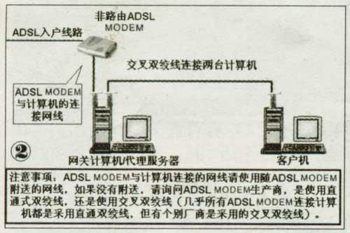 如果你想额外添加一台计算机共享 ADSL上网,那么你须要再购买两块网卡,一块安装在Internet接入计算机中,另一块安装在须要进行共享的那台计算机(以下称为客户机)中。我们建议选购10/100Mbps白适应网卡。值得—提的是,如果 ADSL MODEM是外置以太网接口的,那么Internet接入计算机里面便会有两块网卡,一块用于连接MODEM,另一块用于连接另外一台计算机。当然,一根足够长的双绞线电不可少。需要说明的是:这根用于直接连接两合计算机的双绞线是交叉双绞线,也就是说线的两头排线方式不同,分别是T568A和T568B标准,如图1。