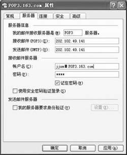 答:在局域网中OE等电子邮件收发软件同样可以通过代理服务器上网,只是不能再使用原来的单机拨号上网设置。而且相对于其他软件的代理服务器设置,邮件软件的服务器设置要更为特殊一点,其代理服务器的类型必须是Socks4或Socks5的服务器。假设所使用的代理服务器的地址为:202.102.49.141,用户的邮件地址为:jjxm@163.com,那么在OE中代理服务器的设置方法为:打开OE后,选择菜单“工具→账户”。在“Internet账户”中选择“邮件”选项卡,然后在账户列表中选择需要设置的账户,点击“属性”按钮。在属性窗口中选择“服务器”选项卡(图2),在接收和发送邮件服务器地址中输入代理服务器的地址(如202.102.49.141),并按“用户名#邮件真实的收信地址”的命名规则,在账户名中输入 “jjxm#POP3.163.com”,单击“确定”保存后即可在代理服务器中收发邮件了。
