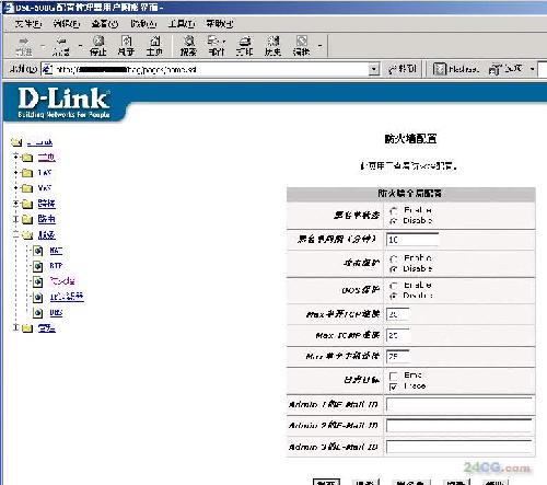 在日志目标里主要用来设定防火墙受攻击事件的记录存放位置。“Trace”选项表示发送到系统中,即保存在猫中;“Email”选项表示把记录发送到指定的管理员信箱。建议选择该项。 而下面的Admin 1(/2/3)的E-mail ID就是用来设定管理员的信箱地址。它主要是用于接收防火墙被攻击的报告,报告的具体内容包括“攻击时间”、“进行攻击的计算机的源IP地址”、“目标IP地址”、“使用的协议”等。根据上述说明,选择配置好各个项目后单击“提交”按钮,把配置信息保存下来。