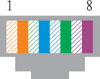 EA-2204路由器的以太网10/100BASE-T接口均使用RJ45连接器。如下图所示为母端插座,其接线共有8根,编号1-8。
