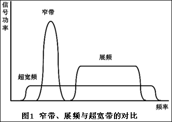 UWB在比展频更宽的频带上传输数据,将香农理论发挥到了极致。窄带通信发射信号的带宽与中心频率之比小于1%;展频为1%~25%,UWB则超过25%。频带扩到如此之宽,与其他通信方式相比,UWB具有不同于窄带与展频的特质。
