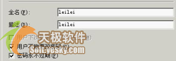 小提示: LEILEI这名用户是笔者随意建立的普通用户,大家在这里不必拘束,可以随意建立自己喜欢的名字。将LEILEI用户加入GUEST组,代表远程LEILEI用户可以访问本机。