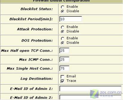 倘若ADSL宽带调制解调器打开内置的路由功能来上网时,那么病毒或黑客的攻击就会直接作用在ADSL宽带调制解调器上,此时要是不对它采取安全保护措施的话,它就会不断地发生断流现象,从而降低共享上网的效率。考虑到一般的ADSL宽带调制解调器都具有内置防火墙功能,因此我们首先应该将该功能启用,以保护它不受非法攻击;在启用该功能时,可以先按照前面介绍的方法,进入到ADSL宽带调制解调器的后台管理配置界面;然后单击该界面中的“服务”标签,并在对应的标签页面中单击“防火墙”选项,打开如图4所示的设置页面:将该页面中的“Attack protection”设置为“Enable”,将“DOS Protection”设置为“Enable”,再单击“提交”按钮,最后再执行保存操作,将上面设置好的参数保存到ADSL宽带调制解调器中,并重新启动一下ADSL宽带调制解调器,就能使内置的防火墙生效了。