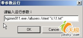 | 步骤3:随后刷新一下上传的目录,此时肉鸡驱动器就会“浮现”出传入的ADSL破解工具。然后在其软件上方单击“右键”按钮,选择“本地打开”选项中的“带参数运行”标签。弹出“带参数运行”对话框,输入该软件执行代码(图2),再单击“OK”按钮,灰鸽子操作界面的状态栏,会出现“远程打开成功”的提示信息,说明已经成功破解ADSL密码。