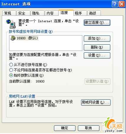 步骤5:顺“原路”返回到系统桌面,打开IE浏览器,然后单击“工具”菜单,选择下拉菜单中的Internet选项。弹出设置对话框,在其顶部位置处选择“连接”标签(图3),再单击右边“设置”按钮,如果想让IE使用代理浏览页面,勾选下方“代理服务器”复选框,把肉鸡刚刚开通Socks5服务的IP地址和端口输入到文本相关位置。单击“确定”按钮,确认使用代理服务器。