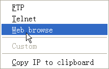 我们可以看到这个网段有两台机器打开了80端口,单击这两台机器左边的小+号图标,可以显示这两台机器所开发的端口信息。61.49.150.68这台机器开放的是一个IIS的服务器,61.49.150.85这台机器开的是一个302标志,根据经验,我们可以知道这里开放的是一个中兴系列的路由器配置接口。本篇文章我们主要介绍ADSL路由器的安全隐患,IIS的安全性问题我们在后面的文章再介绍,这里我们只需在61.49.150.85上单击右键,选择web方式浏览即可。