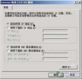 然后进入单击桌面中的“我的电脑→控制面版→网络和拨号连接”,在随后打开的窗口中右击“本地连接”选择属性命令,接下来,在“本地连接属性”窗口中双击“Internet 协议(TCP/IP)”,在下来出现的窗口中勾选“自动获得IP地址”,确认无误后,单击“确定”按钮完成网卡的设置(如图1)。