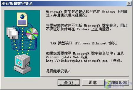 大家可以从http://download.zol.com.cn/detail/12/114301.shtml上下载此软件,解压缩后双击安装文件进行安装。在安装过程中,RasPPPoE会对此弹出Windows徽标未认证的窗口(如图2),不过,我们只要直接单击“是”按钮就可以通过完成安装了。安装完毕后,RasPPPoE将弹出拨号连接对话框,在此输入你的用户名和密码,确认无误后单击“确定”按钮,稍等片刻后,RasPPPoE就将我们带入了宽带的世界(如图3)。