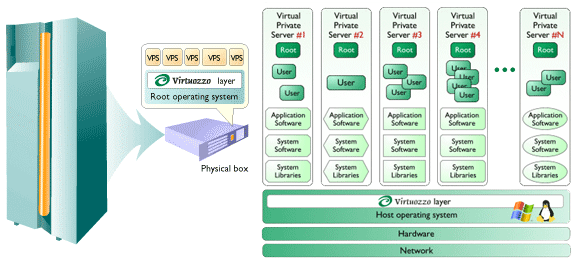VPS技术同时支持Linux和Windows平台。Linux版Virtuozzo服务器还支持在虚拟服务器上实现同版本内核的不同Linux发行版。