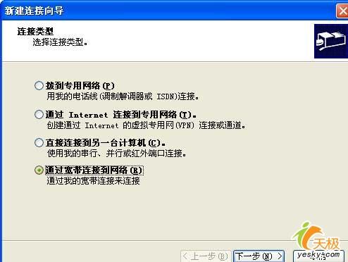 首先打开IE浏览器窗口,单击该窗口菜单栏中的“工具”菜单项,从弹出的下拉菜单中单击“Internet选项”命令,打开Internet选项设置界面;单击该界面中的“连接”选项卡,然后单击对应选项设置页面中的“添加”按钮,打开如图3所示的Internet连接向导设置界面,将该设置界面中的“通过宽带连接到网络”选项选中,之后再按设置窗口的提示完成剩下的拨号上网设置操作就可以了。