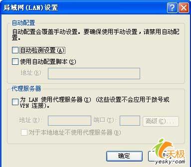 其次在Internet选项设置界面中,单击“连接”选项卡,再单击对应选项设置页面中的“局域网设置”按钮,打开如图4所示的设置窗口,检查一下该窗口中的“自动检测设置”项目、“使用自动配置脚本”项目、“为LAN使用代理服务器”项目是否处于选中状态,如果是的话必须将它们的选中状态全部取消,最后单击一下“确定”按钮保存好上面的参数设置操作。这么一来,日后我们再次进行拨号上网时,就会感觉到IE打开网页的速度很快了。