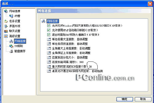 sp2的一个特点就是限制了tcpip连接数,他设置为10了。这怎么行,解决方法是有的已经有高手做了破解程序我等小的就下载点击吧。记得必须在安全模式下运行。修改后最大连接数是50,为啥不弄大点?你去问那些高手为什么设置为50,程序里面又没有可以改的项。^_^