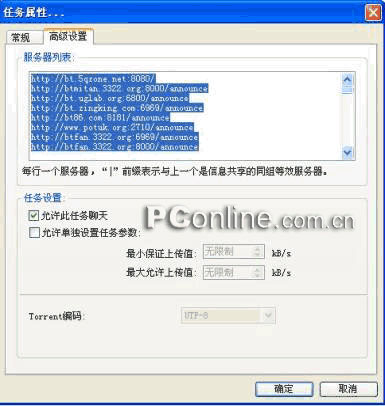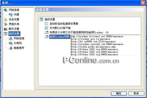 每次都手段添加服务器,怎么会这么累啊。幸好bc里面提供了自动添加的功能(如图16)。不过这里限制了可以添加tracker服务器的数目把几个重要的放上去。希望以后的版本没有这个限制。可以设置任务开始多长时间后才添加备用tracker列表,默认是10分钟。
