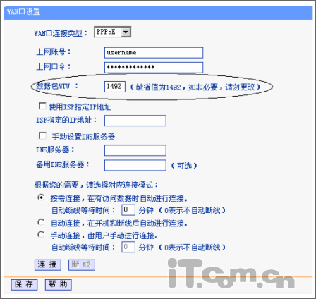 2、 VDSL:其接入设置发式和ADSL相同。但在有的地方,会遇到可以上QQ,但不能打开网页,这时需要您登陆TP-LINK路由器,网络参数里WAN口设置下,将MTU的值改小,默认的是1492。