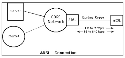 ADSL技术能利用现有的市话铜线进行信号传输,其最高速率:下行信号(从端局到用户)为9Mbps,上行信号(从用户到端局)为1Mbps。现有的市话铜线网的用户数目十分庞大,而ADSL能对现有的市话铜线进行充分的利用,可以有效地保护原有的网络资源。