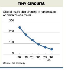 英特尔共同创始人摩尔提出的摩尔定律(Moore's Law)曾让电脑行业的专家们担忧不已,担心电脑芯片的发展会最终达到极限。然而半导体业巨擘英特尔周三(11月5日)表示,已发现一种为晶体管绝缘的突破性方法,可克服在今后10年中提高芯片效能的最大障碍。并可能解决半导体业界一项最根本的难题:即在电脑芯片不断缩小的同时,能不流失电能且不增加发热。