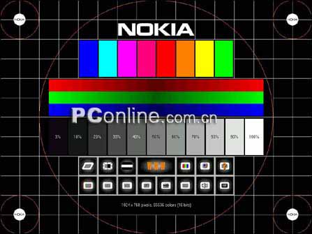 换完零件后,我们要对其画面质量进行调整,以达到“全新”的效果!因为我们翻新后的显示器一定不能露出马脚,所以我们调试的时候才不会去管其寿命,只要能把画面质量调成最好,牺牲寿命也在所不惜!首先,调整使用的软件,要数NOKIA的显示器测试软件最方便。