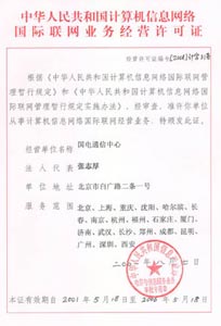 新浪科技记者在国电通信网站上查到了国电通信通信的互联网业务经营许可证,该许可证上并没有明确经营范围,而且颁发时间是2001年。